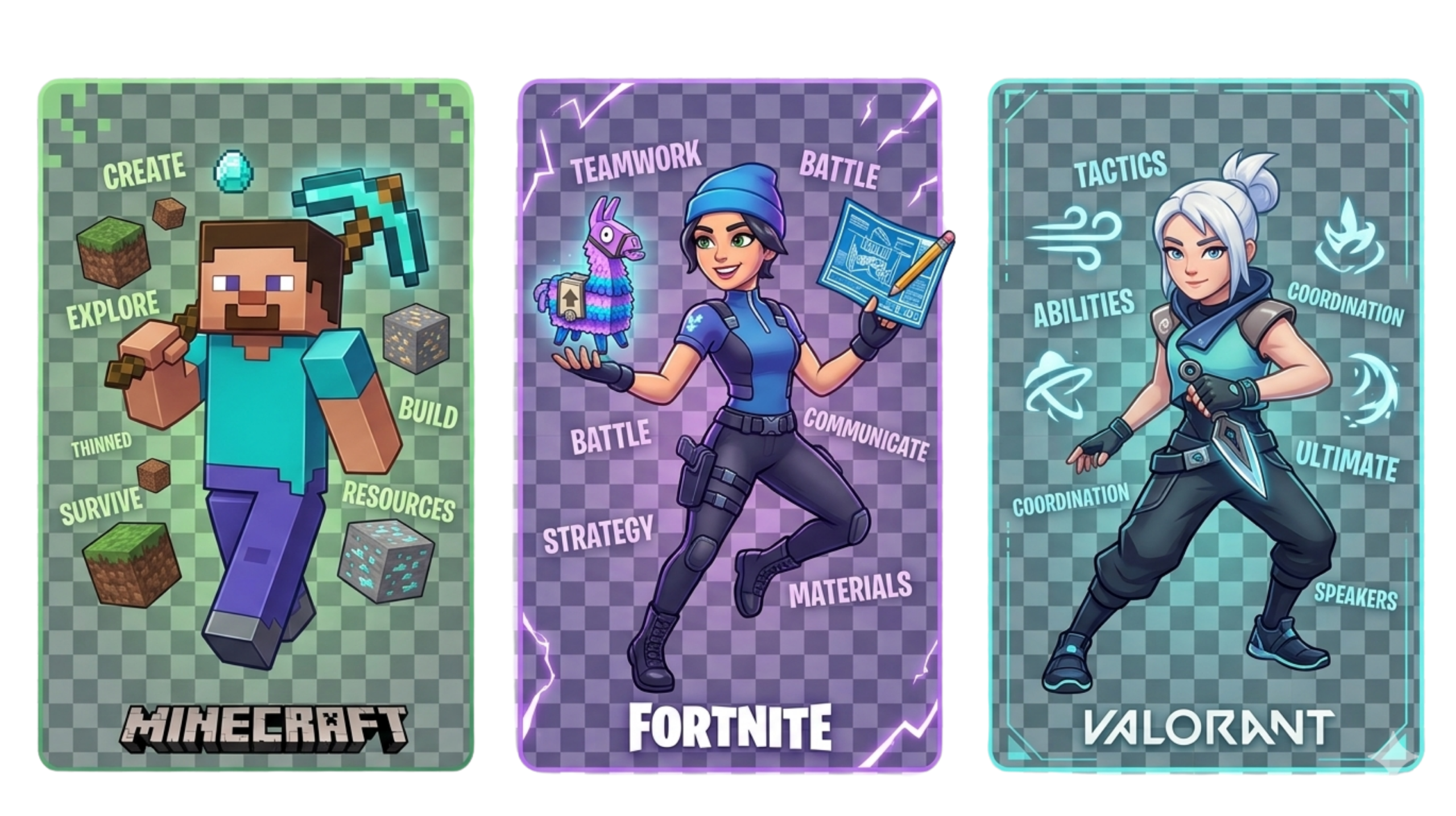Prezentujemy trzy unikalne ścieżki naszego kursu angielskiego opartego na grach wideo. Niezależnie od tego, czy wolisz kreatywne budowanie w Minecraft, dynamiczne przetrwanie w Fortnite, czy wciągającą i emocjonalną fabułę w Life is strange, mamy coś dla Ciebie. Pod opieką lektora – pasjonata gier komputerowych, w małej grupie od 3 do 5 osób, będziesz szlifować komunikację w języku angielskim, tworzyć opisy swoich postaci i strategii, ucząc się przez praktykę. Wybierz swoją grę i stwórz bohatera, jakiego świat jeszcze nie widział. W naszym kursie języka angielskiego dla nastolatków granie w gry video to dopiero początek. Razem z lektorem zanurzycie się w wirtualne światy, a język angielski zaczniecie przyswajać całkowicie naturalnie – podczas planowania strategii, budowania baz i wydawania komend. Zapomnij o nudnych podręcznikach, czas na prawdziwy gaming połączony z konwersacjami po angielsku! Gotowy na start?